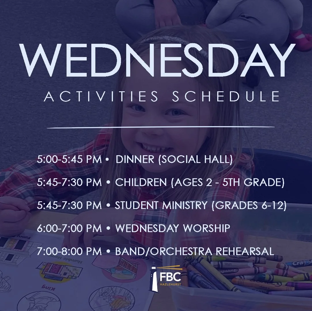 These Wednesday activities are not taking place during the summer and our plan is to start back in the fall. We will keep you updated.