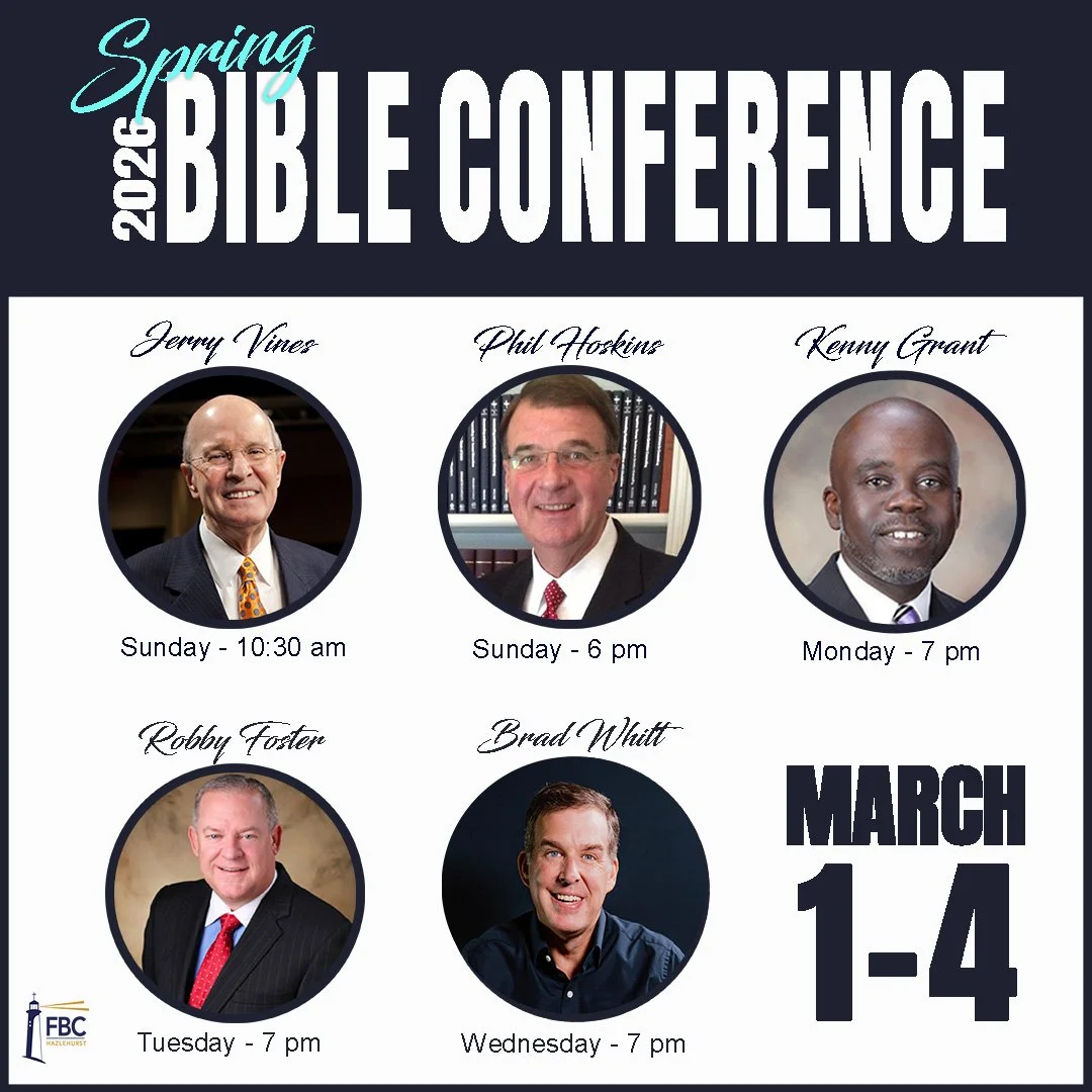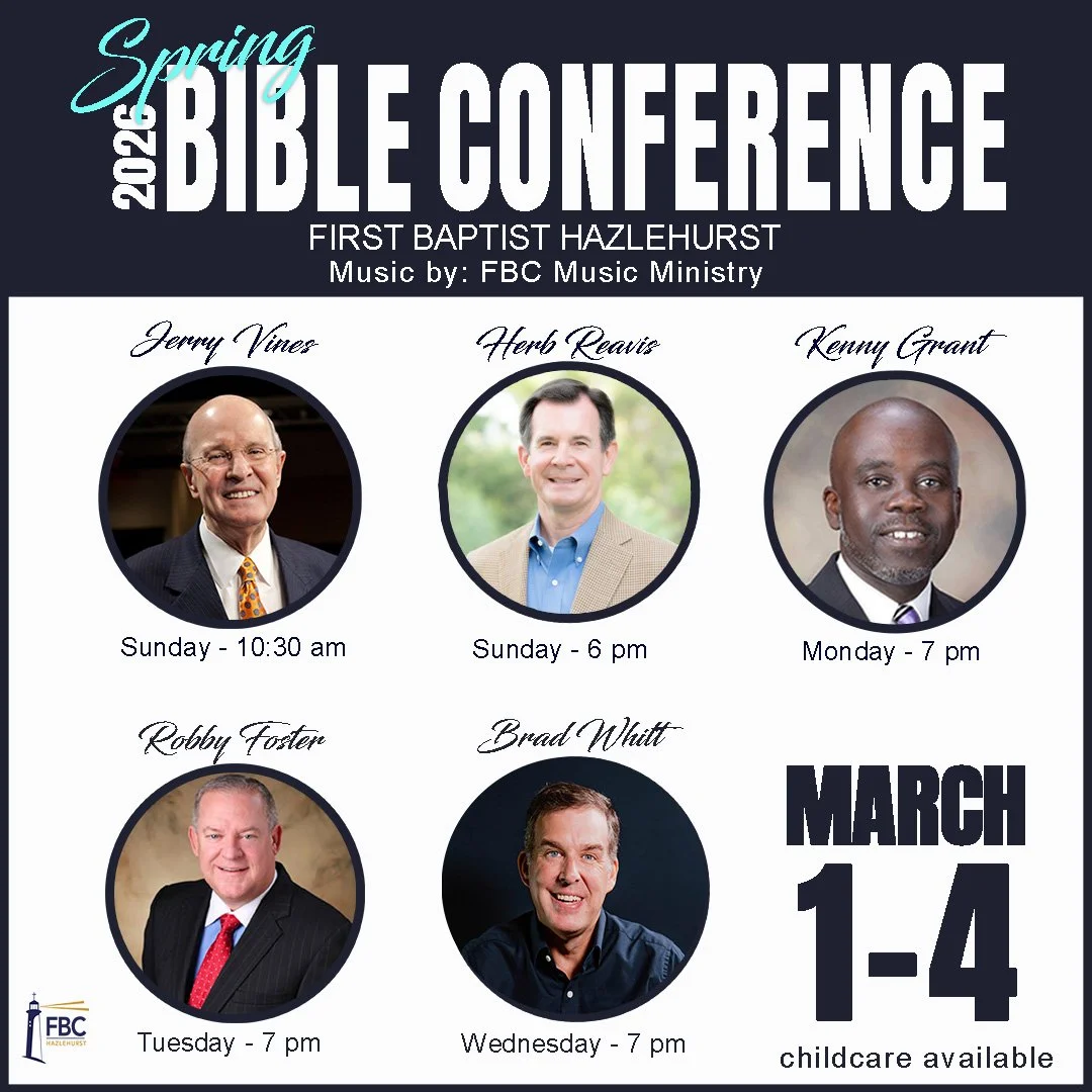 This line-up promises four days of great teaching with worshipful music provided by the FBC Music Ministry. Spread the word so we can share this powerful and much needed time of revival. As always, childcare is available.